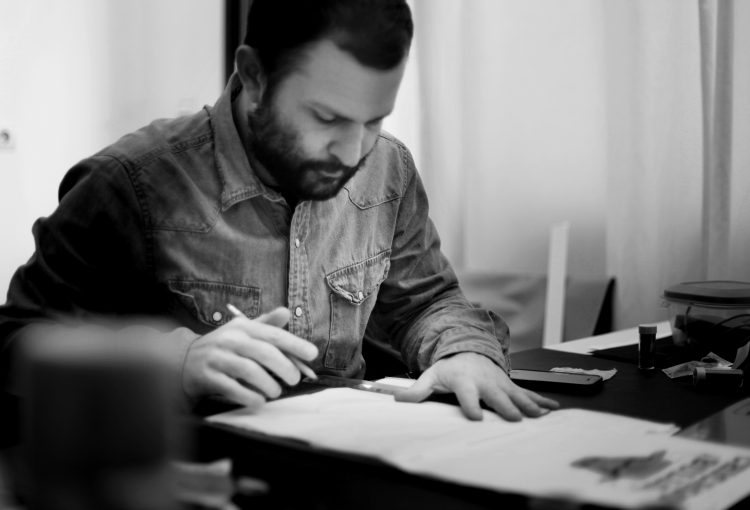 Le plasticien Badr El-Hammami pendant son séjour. Réalisation Melania Avanzato.