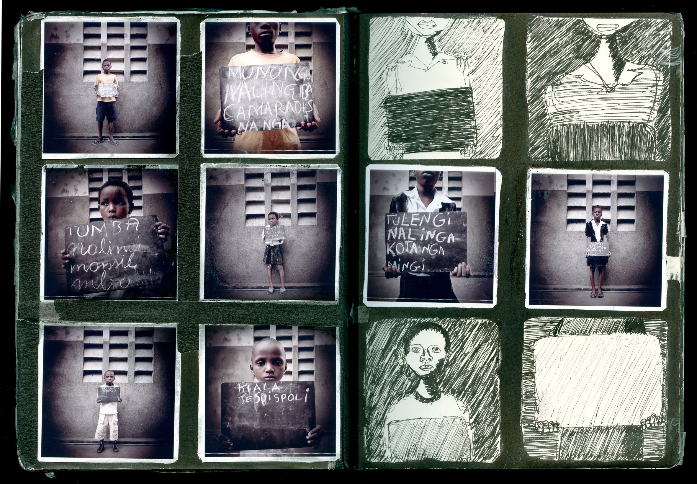 « Trainproject » et « Bango », ce sont aussi des mots, des petits dessins et des rêves, tracés spontanément à la craie, sur des ardoises, et présentés par les enfants à l’objectif de José Ramón Bas. « Je veux être Président », « J’aime grandir en sagesse et en honnêteté », « Je pense à tous les enfants de mon âge, qui sont dans la rue », « Pourquoi pas l’Afrique ? », etc.